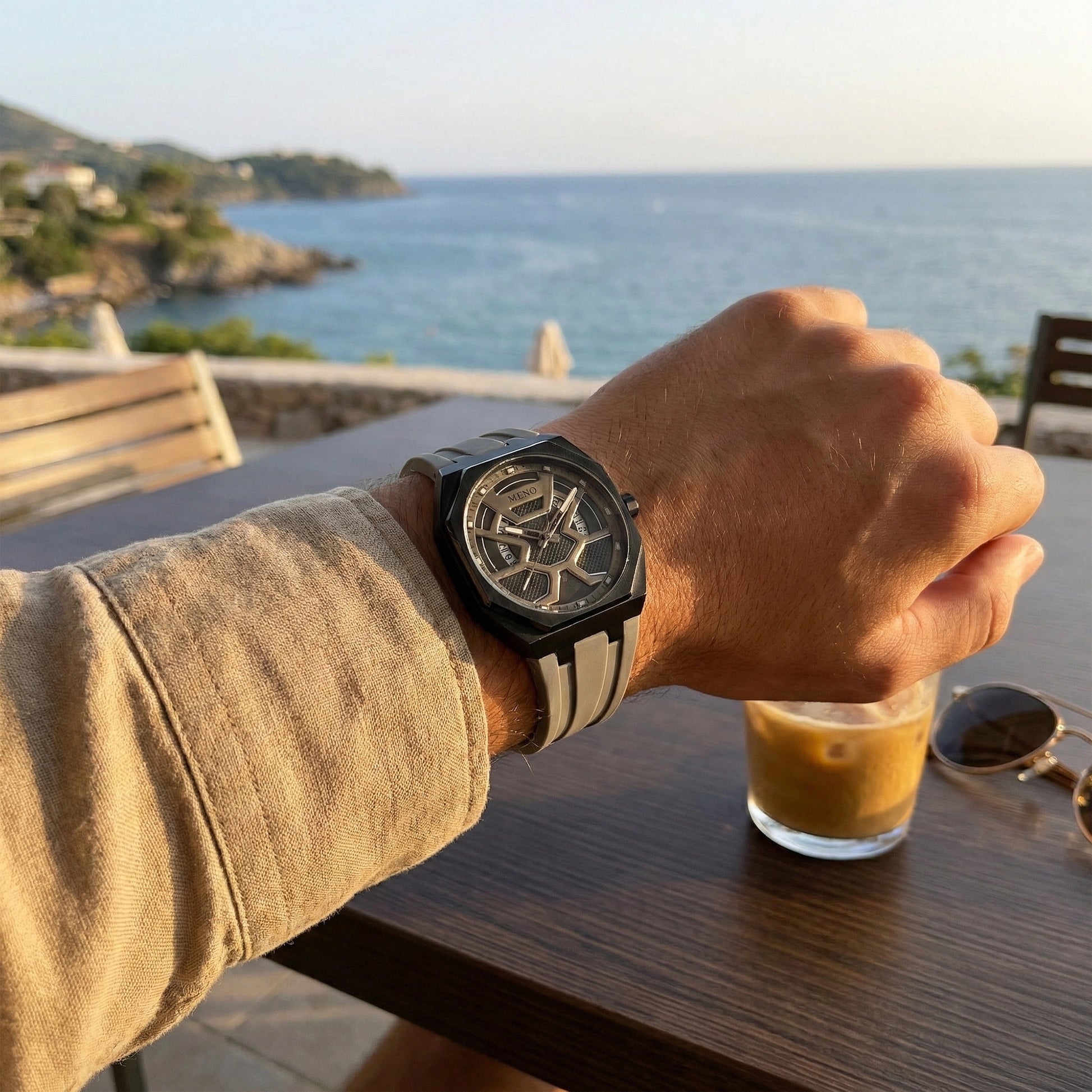 Powered by a reliable quartz movement, the Meno Onyx offers accurate timekeeping along with a striking visual presence. Its dark dial, smooth case finish, and coordinated strap come together to create a look that’s both versatile and memorable.
